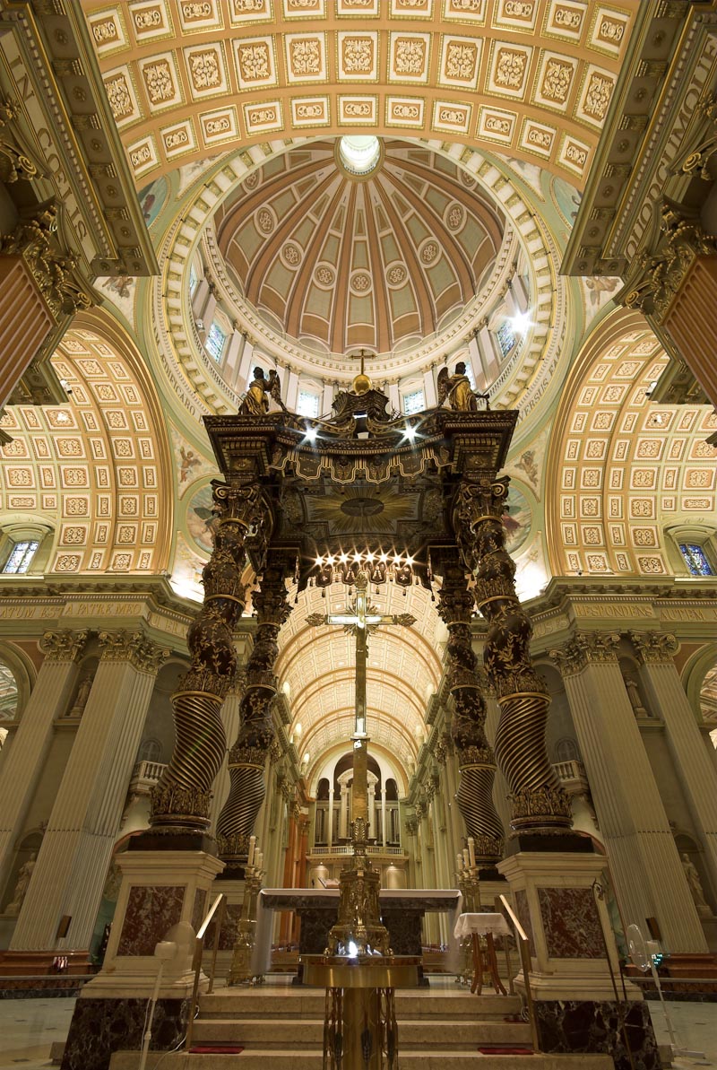 this is the third largest church in quebec. mgr. ignace bourget, second bishop of montreal, ordered the construction of this church to replace the former saint-jacques cathedral which had burned in 1852. his choice to create a scale model of saint peter's basilica in rome was a response to a rivalry with the sulpician order who had been the feudal seigneurs of montreal, and with the Anglican Church, both of which favoured the neo-gothic style instead.