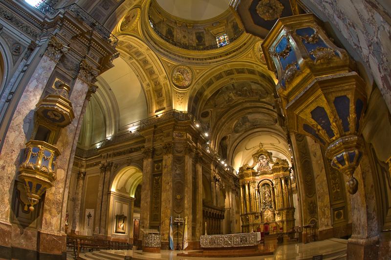 this cathedral is the main catholic church in buenos aires. it overlooks the plaza de mayo. due to the numerous renovations since its origins in the 16th century, this church is a mix of architectural styles.