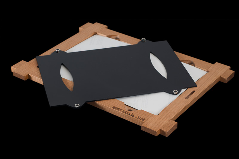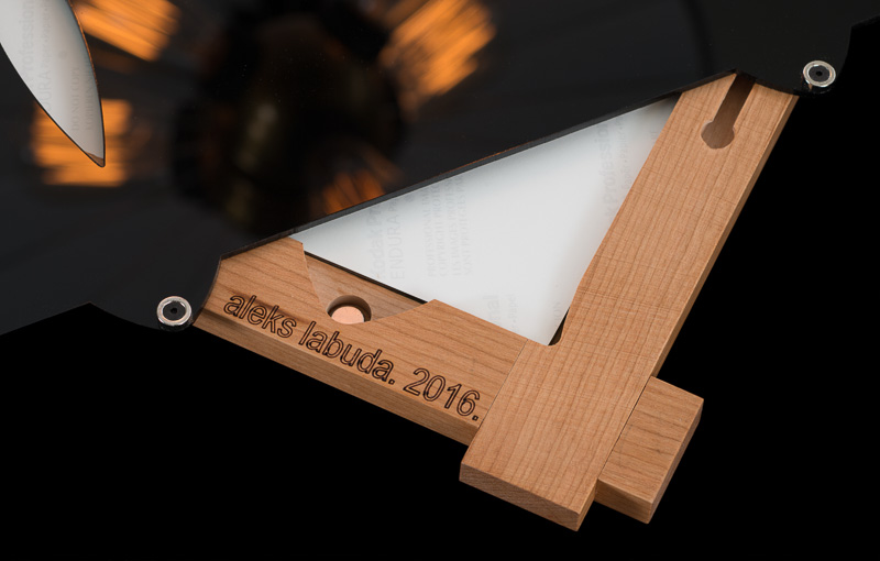 the photo backplate is made of black acrylic and was manufactured with a laser cutter at the santa barbara hacker space.