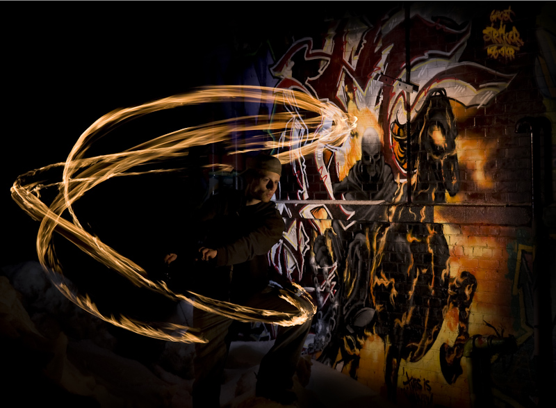 this photograph was taken at the canada malting plant (see "abandoned buildings") in st-henri. four flashes illuminated this scene, three of which were collimated to illuminate the background graffiti.